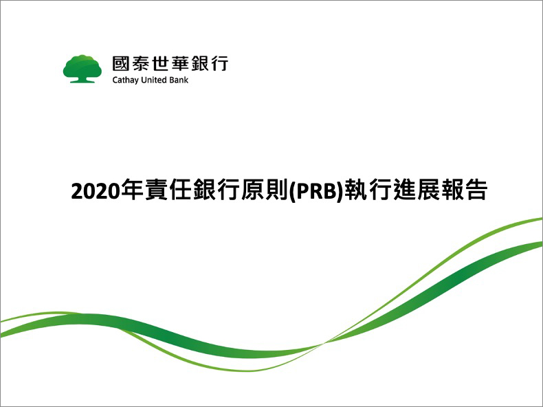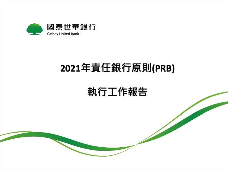 At the end of 2018, Cathay United Bank became the first bank in Taiwan declaring its voluntary adherence to the United Nations' Principles for Responsible Banking (PRB). In February 2021, it became the first bank in Taiwan to have its PRB implementation results assured by an accounting firm. Cathay United Bank continues to integrate the PRB into its core banking functions, leveraging its influence in the financial sector to foster the harmonious development of businesses, society, and the environment.