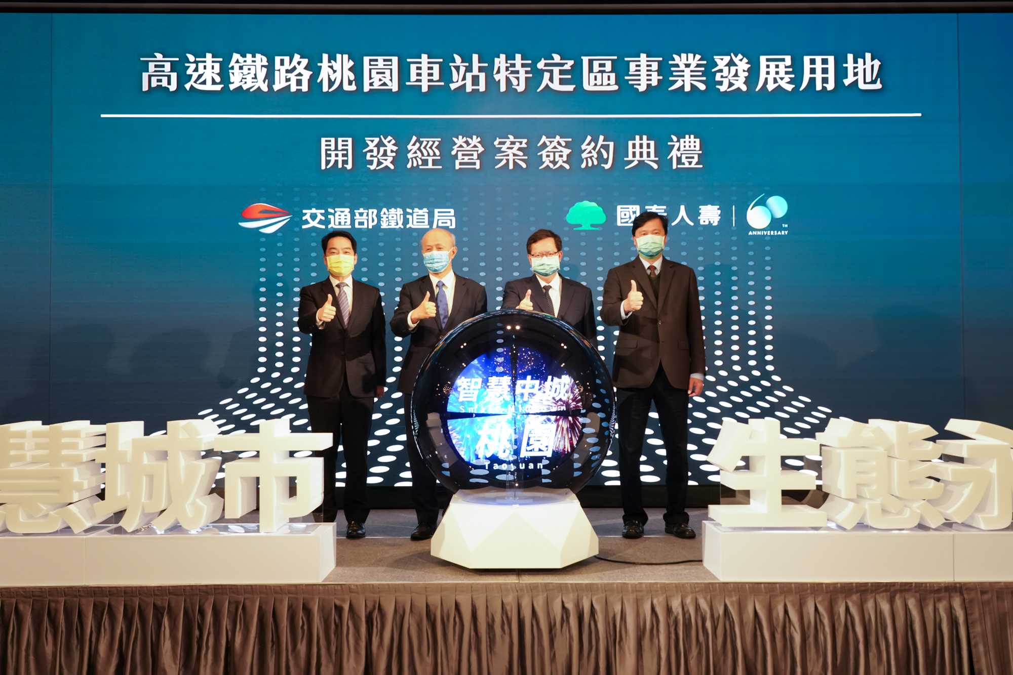 國泰人壽與交通部鐵道局今(17日)共同舉辦「高速鐵路桃園車站特定區事業發展用地開發經營案簽約典禮」,本案位於高鐵桃園前站,未來結合高鐵桃園後站(桃園產專區)開發,可望為桃園帶來更多就業機會,打造桃園新都心,結合高鐵、捷運、商場等多項建設及投資,為高鐵沿線規模最大的高鐵桃園車站特定區開發案,推升桃園成為台版東京丸之內。