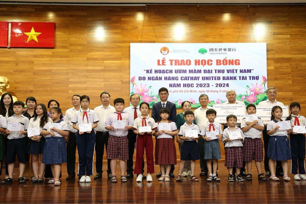 國泰世華銀行基金會秉持「推動學童平等受教權」之核心精神,自2004年與國泰世華銀行共同推動《大樹計畫》,扶助台灣偏鄉弱勢學童,並於2008年將計畫推展至越南。《越南大樹計畫》16年來,已頒發逾1.8萬份獎助學金給越南當地的清寒學童,累積捐贈金額逾新台幣1,500萬元,照亮逾萬名越南學童求學之路。今年國泰世華銀行基金會再次宣佈捐贈新台幣100萬元(折合約越南盾7.8億元),提供近千名學童獎助金。