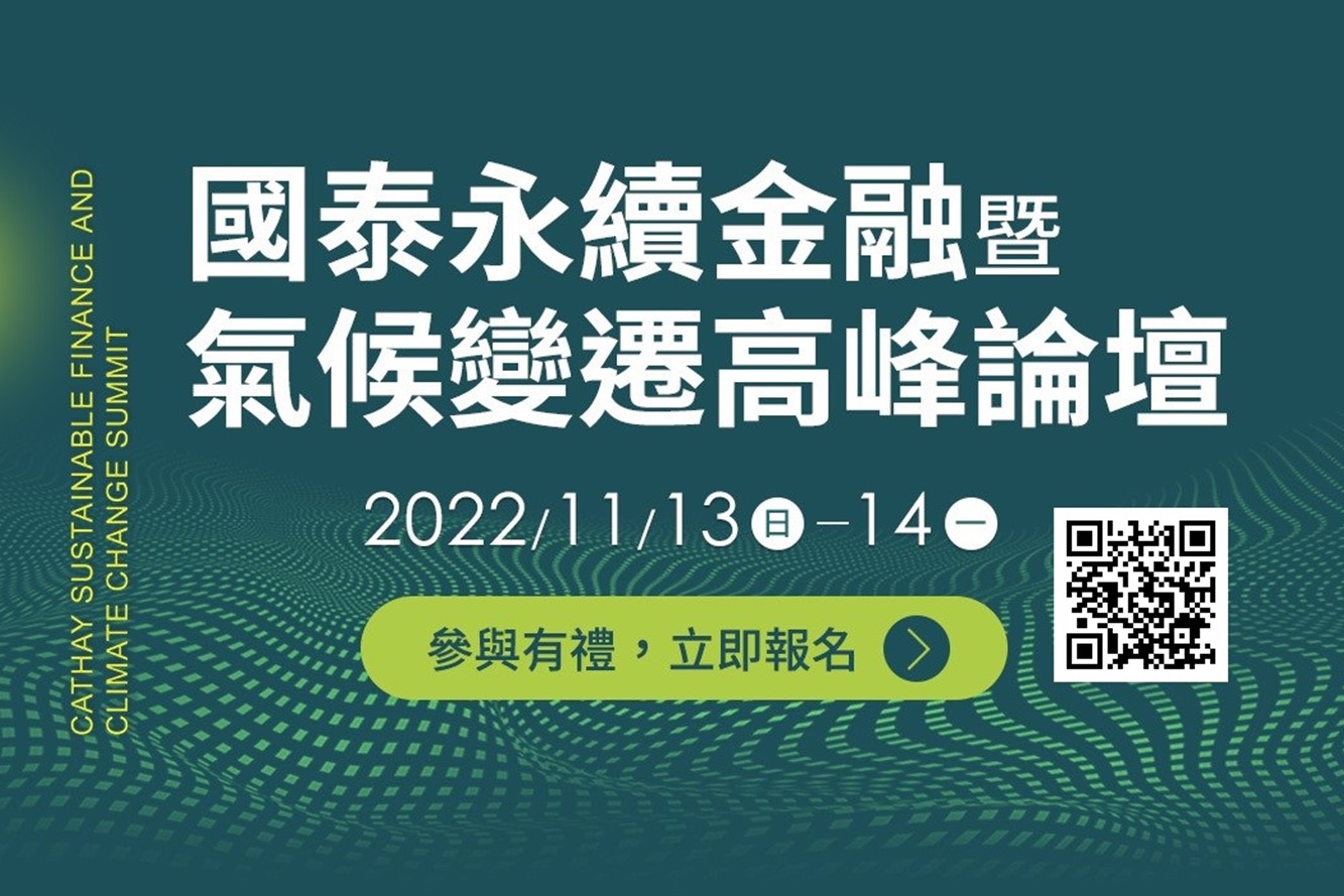 「2022國泰永續金融暨氣候變遷高峰論壇」11/13-11/14登場 獨家雙語轉播埃及COP27週邊峰會