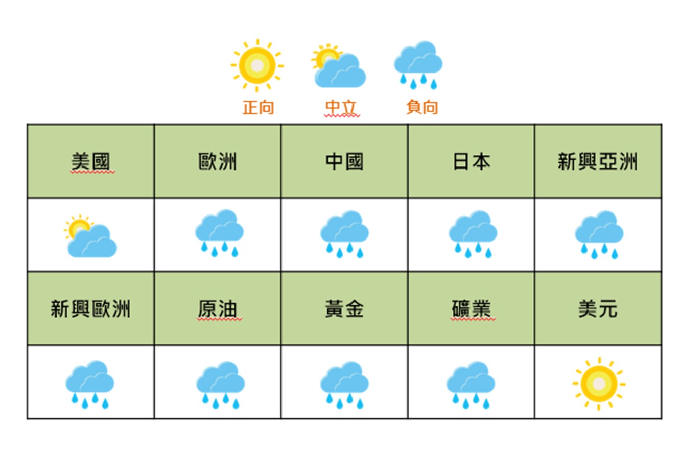 國泰證券首先針對2022年11月全球主要股市及商品進行觀察,當全球籠罩在升息循環中,投資者避險資金繼續流入「美元」,未來將持續強勢,故對美元抱持「正向」看法;以美國市場來看,雖適逢第四季期中大選、歐美節慶效益等投資點出現之際,卻仍因高通膨及升息循環影響經濟發展,因此國泰證券對其持中立看法;另一方面,歐洲、日本、中國及新興市場等成熟國家,面臨Fed升息時紛紛採取不同貨幣政策,使市場震盪劇烈,因此國泰證券皆以保守角度看待。