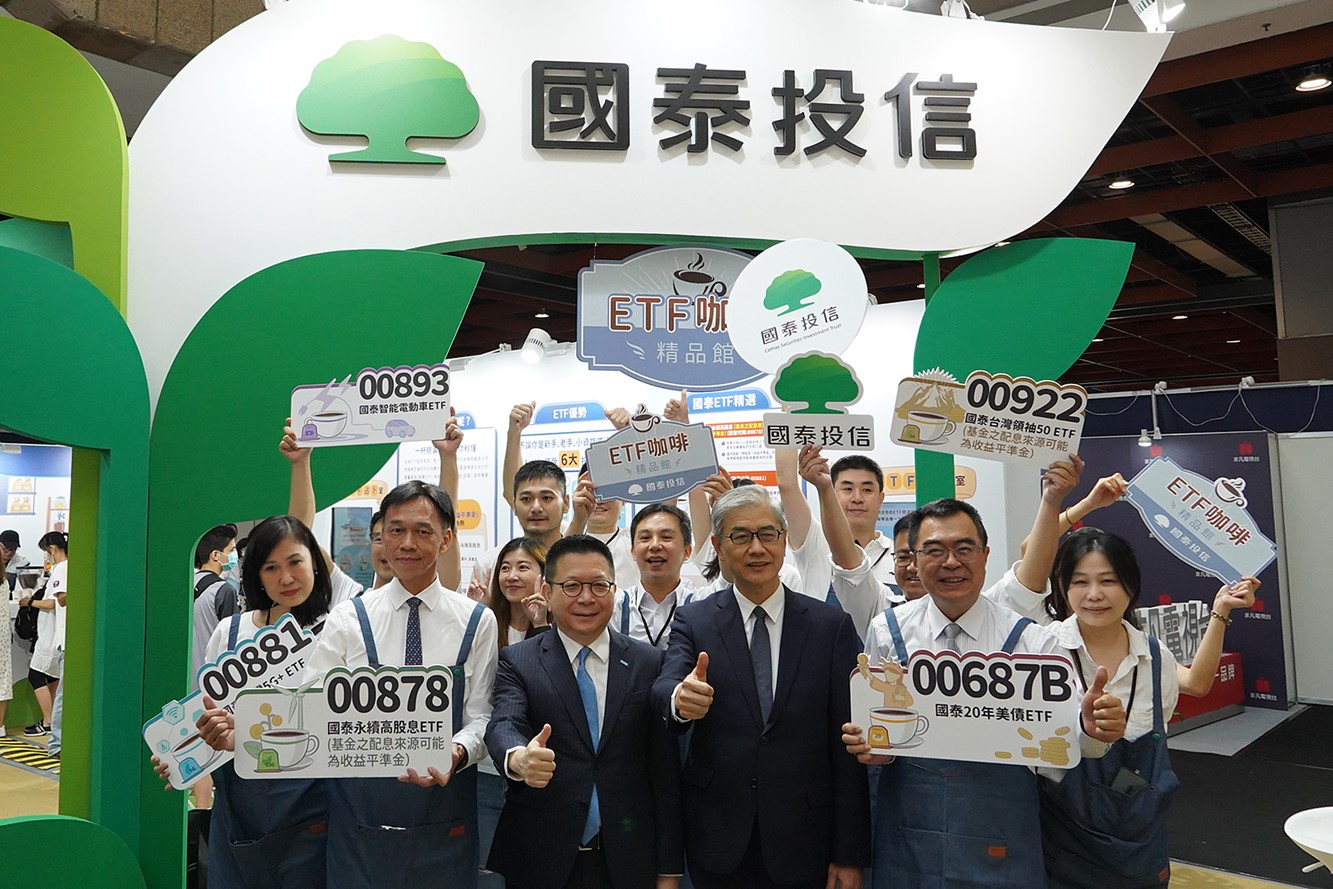 證交所主辦全台唯一一場「榮耀20 ETF啟動財富博覽會」,今明兩天(8/11-8/12)於世貿一館盛大開展,國泰投信將人氣網站「ETF咖啡精品館」首次實體化,打造結合永續概念的手繪風咖啡快閃店,而國泰投信董事長張錫也率領多位高階主管親自換上藍色圍裙,擔任一日咖啡服務生到攤位介紹展出特色,歡迎民眾到國泰攤位品嘗美味咖啡,進行ETF咖啡占卜,成為現場人氣最高攤位,金管會主委黃天牧、台灣證券交易所董事長林修銘也一起蒞臨攤位參觀。