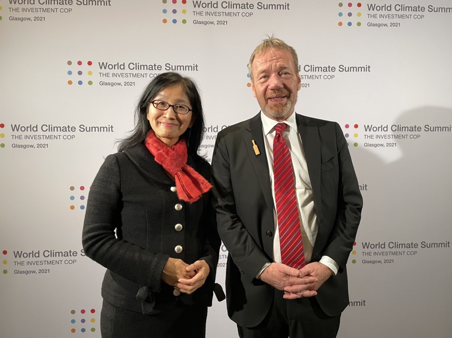 《聯合國氣候變化綱要公約》第26次締約方大會(COP26)今年於蘇格蘭的格拉斯哥舉辦,為期兩週的議程中有近兩百個締約國與會,共同訂定減碳目標「淨零碳排(Net-Zero)」,國泰金控投資長程淑芬,受邀參加COP26週邊會議,於8日的世界氣候高峰會(World Climate Summit, WCS) 擔任講者,分享金融業支持氣候金融的前瞻視野,這是繼今年9月參加世界氣候論壇亞洲場之後,再度將「台灣經驗」帶上世界舞台,彰顯台灣金融業支持淨零碳排永續金融的企圖心,程投資長為台灣出席COP26正式週邊會議的唯一金融業代表。