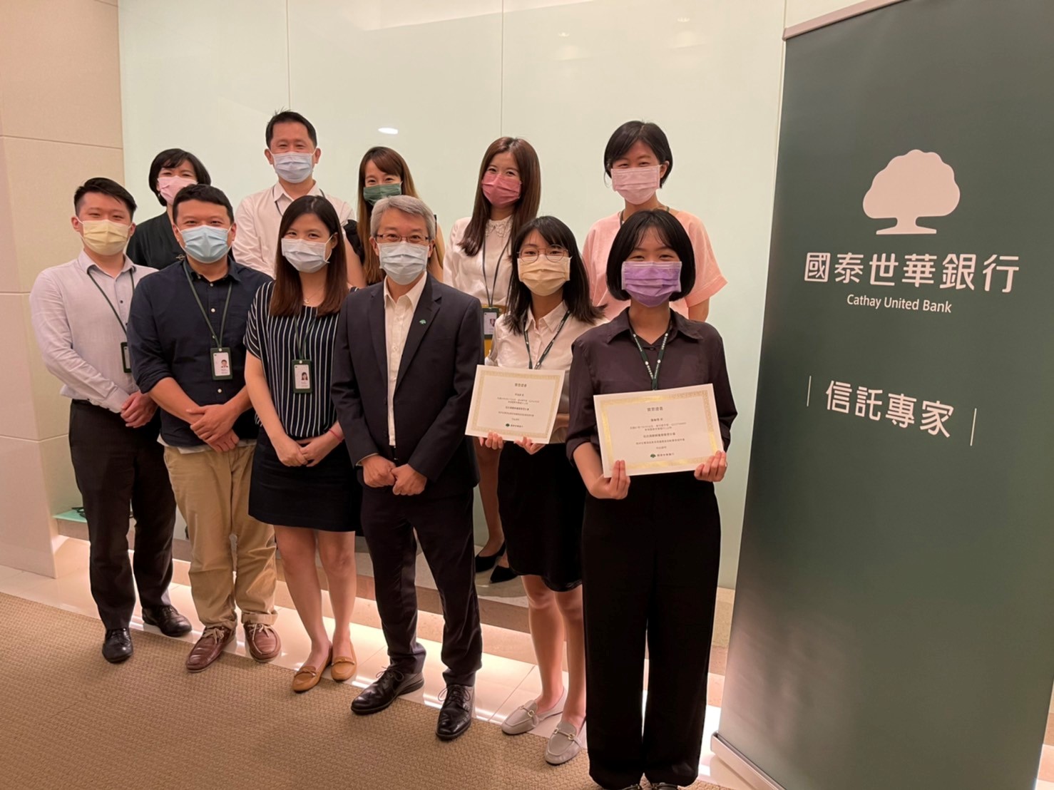 國泰世華銀行積極推動「信託2.0」,除了在今年上半年分別與國立政治大學法律系大學部、在職專班進行實體及線上的產學交流,暑假期間更率先試辦「信託規劃專家實習生計畫」。透過國立政治大學法律系社群招募,獲得踴躍迴響,期間遇疫情三級警戒,利用線上甄選及面試,最後由國立政治大學法律系大四學生李冠誼,及法研所一年級學生蘇榆霈脫穎而出,經過為期一個月的密集培訓,以優異表現通過該計畫之信託實務模擬案例口試,展現學習成果。