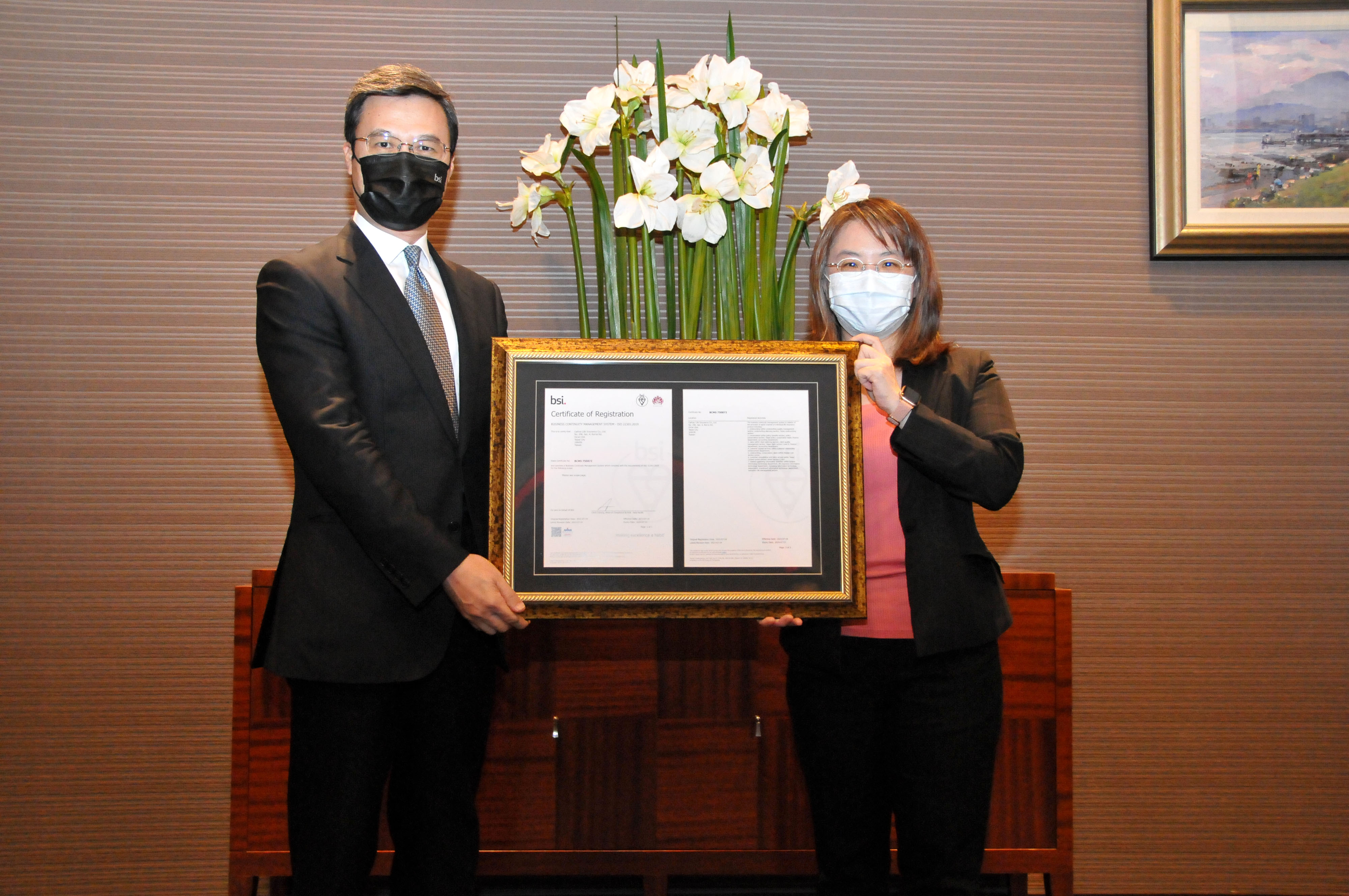國泰人壽於2021年七月正式獲頒BSI英國標準協會「ISO 22301營運持續管理系統」國際標準驗證,成為台灣首家通過BSI ISO 22301認證之保險公司,並於9月10日由BSI東北亞區總經理蒲樹盛親自頒發證書,國泰人壽風控長陳玟琪代表授證。