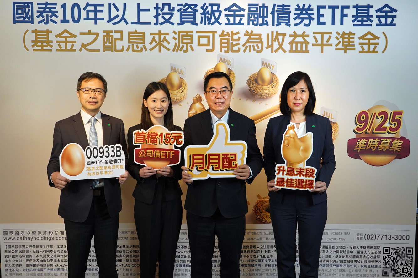 國泰投信9/25開募「10年以上投資級金融債券ETF」 15元甜甜價