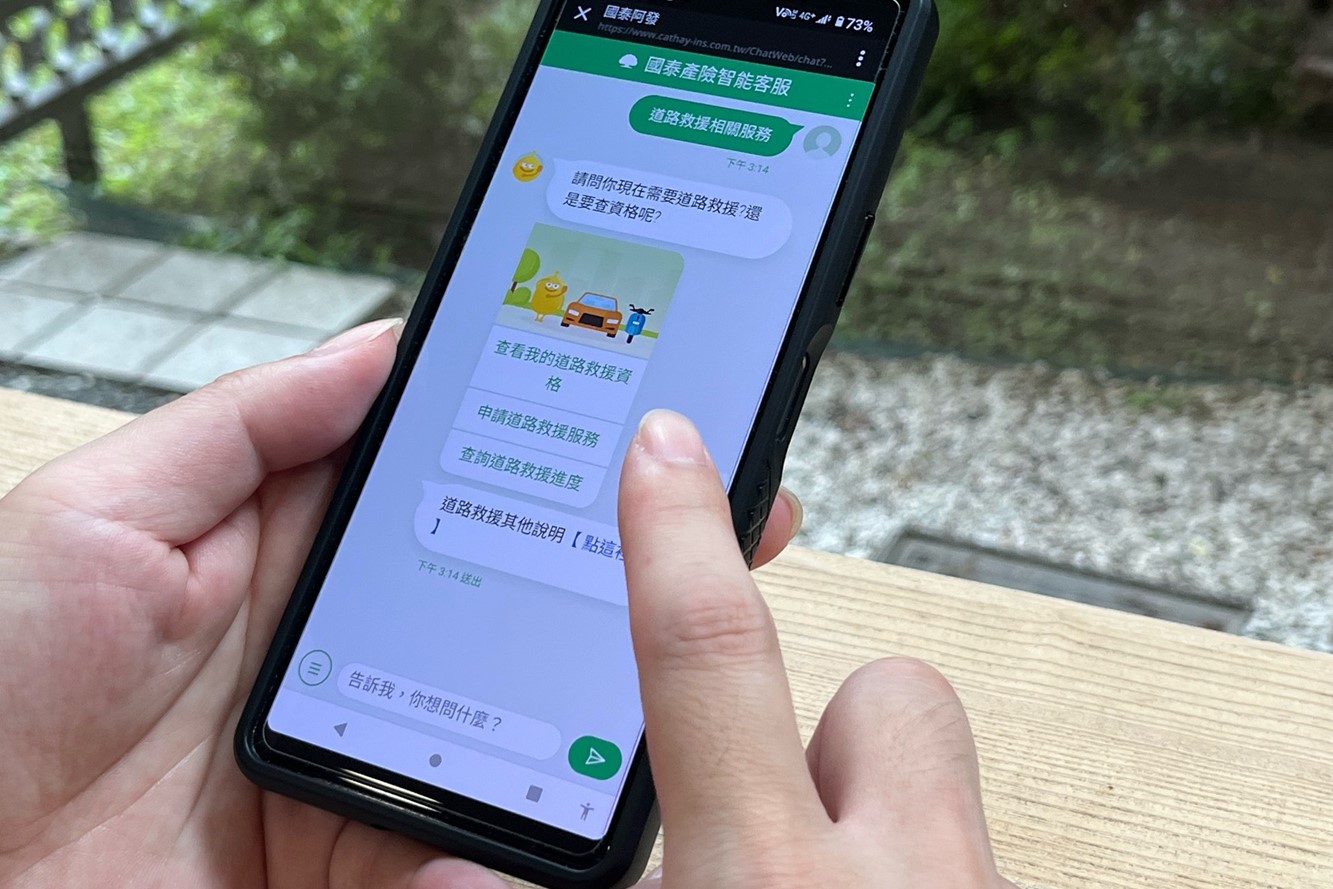 春節期間如行車遇突發狀況,即可於國泰產險LINE官方帳號或官網運用 「智能客服阿發–道路救援服務」,客戶只需透過手機輸入車牌號碼、行動電話、姓名三項資料,即時發送需求,客服會在5至10分鐘內回電,協助安排拖吊、代送油、加水、更換備胎等救援處理。若民眾急需事故諮詢,歡迎撥打國泰產險客服聯絡專線0800-212-880,客服人員每日8:30至晚間21:00皆會為您提供專業、熱忱的諮詢服務。(20230111)