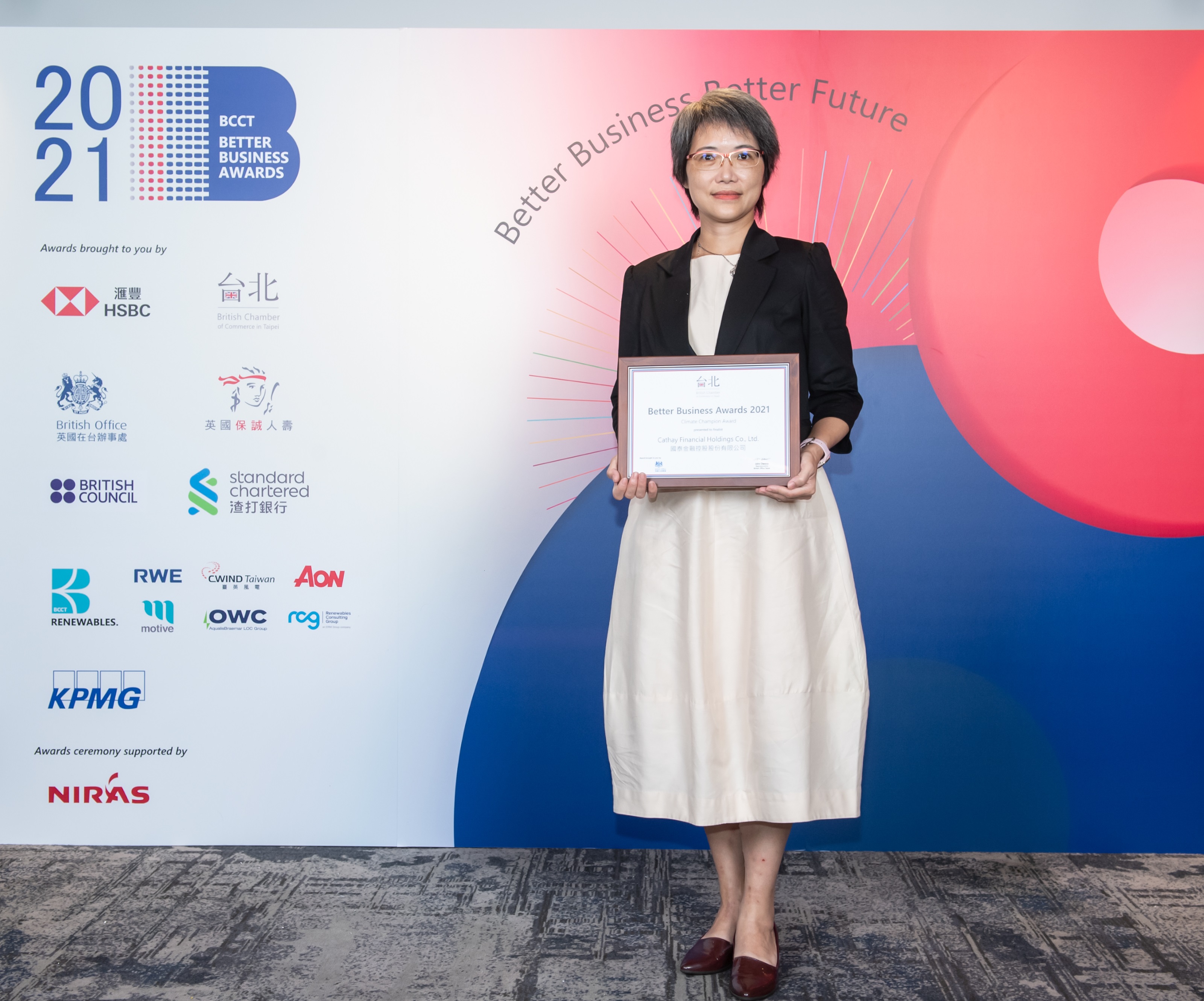 台北英僑商務協會(British Chamber of Commerce in Taipei, BCCT)近日舉辦「Better Business Award優良企業貢獻獎」頒獎典禮,國泰金控不僅推動自身零碳營運轉型,更透過議合行動引領被投資企業邁向淨零,不停歇的努力獲得國際評審青睞,入圍本次「最佳企業氣候行動獎」,為此獎項入圍者中唯一的金融業者。