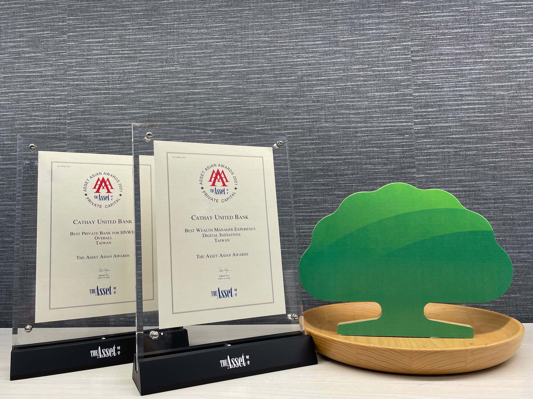 國際權威金融媒體《財資雜誌》(The Asset)日前頒發「2021 Triple A Private Capital Awards」,國泰世華銀行以國泰智能投資(ROBO)和私人銀行團隊抱回「台灣最佳數位財富管理體驗獎」(Best Wealth Manager Experience, Digital Initiatives-Taiwan)和「台灣最佳私人銀行—高淨值資產客戶」(Best Private Bank for HNWIs – Taiwan, Overall)兩項大獎肯定。