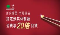 即日起至2018年5月19日,卡友至13家米其林得獎餐廳嚐星即可享筆筆20倍紅利點數/現金回饋[1],國泰世華銀行珍選出13家餐廳包含君品酒店-頤宮、祥雲龍吟、Danny's Steakhouse、La Cocotte by Fabien Vergé、MUME、RAW、大腕、大三元酒樓、吉兆割烹壽司、金蓬萊遵古台菜餐廳、鮨野村Sushi Nomura、鮨隆與謙安和,邀請老饕卡友搶先一同品嚐在地美食、感受星級服務。